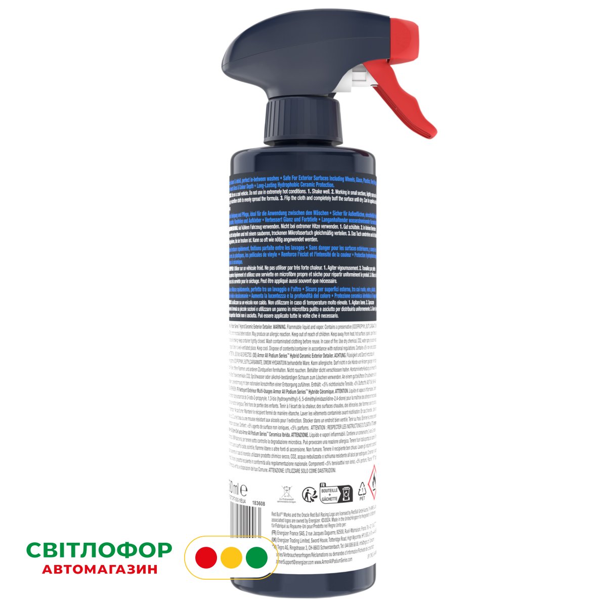 - Флакон 500 мл гібридного керамічного спрею для догляду за зовнішніми елементами авто Armor All Podium Series Hybrid Ceramic Exterior Detailer Spray, створений відповідно до високих стандартів команди Oracle Red Bull Racing;