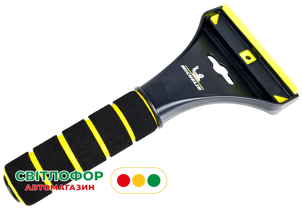 Скребок для льоду з полікарбонатним лезом із закругленими краями, які можна використовувати з усіх чотирьох сторін (витягується з кріплень). Полікарбонатне лезо незламне при температурі до -30°C. М’яка рукоятка для більшого комфорту.